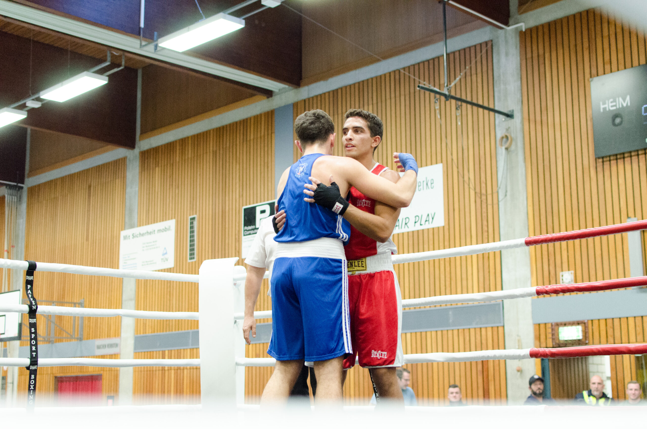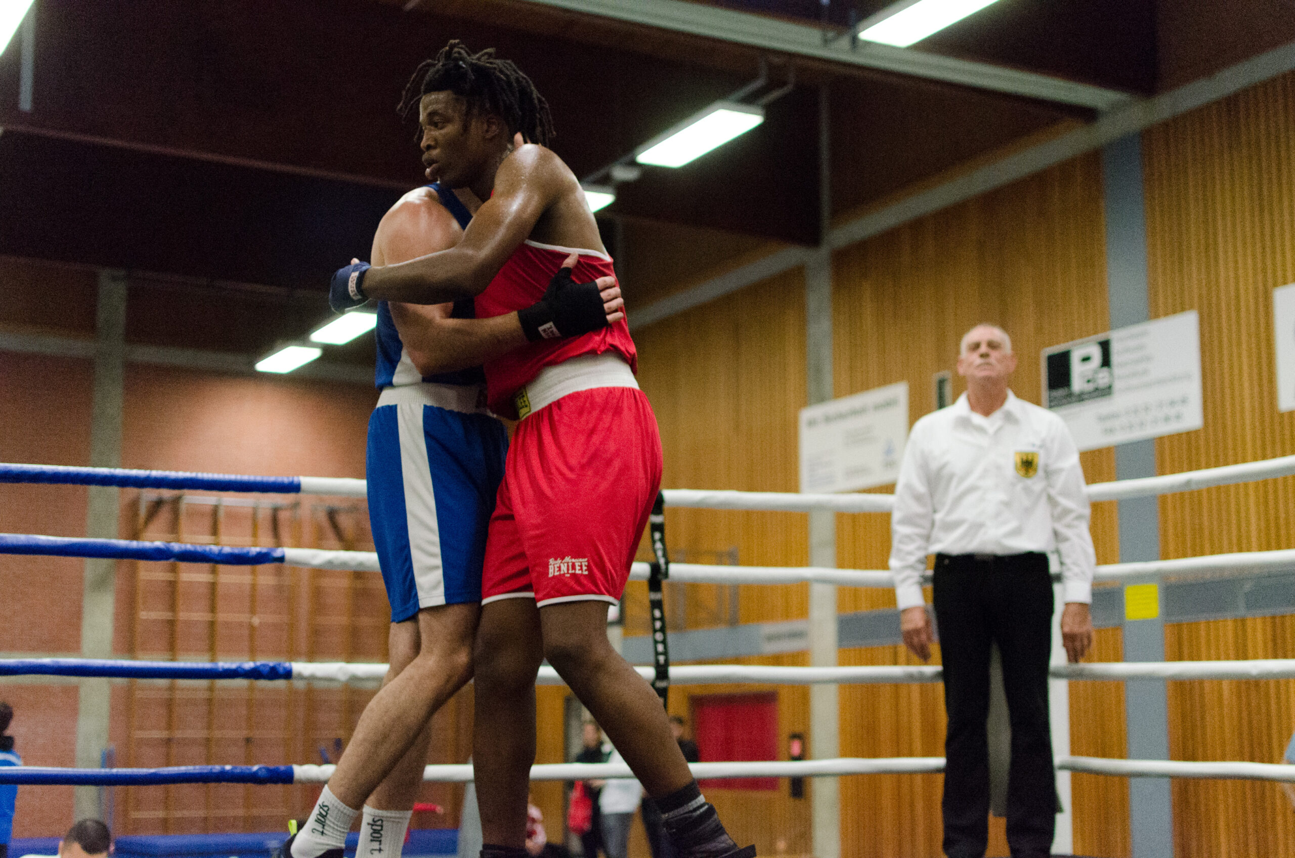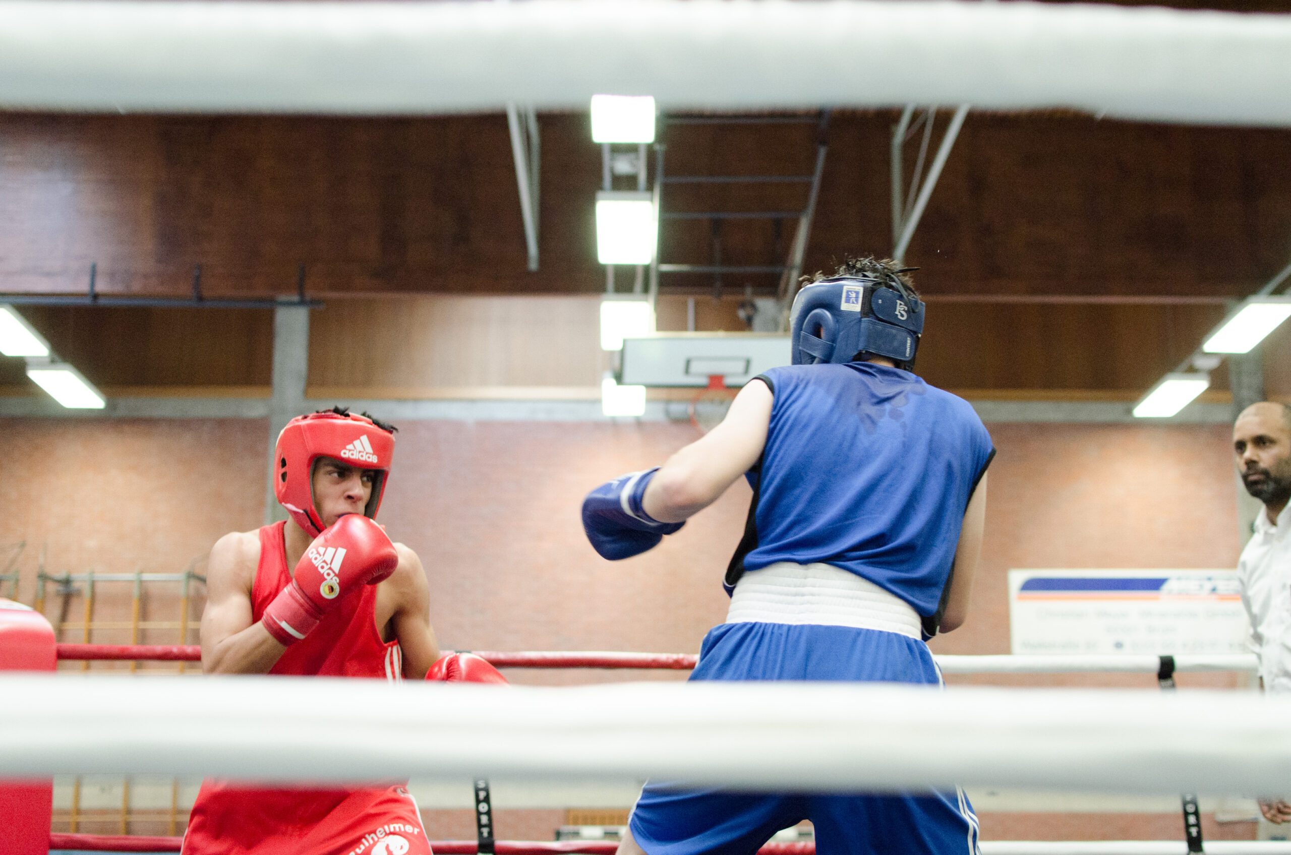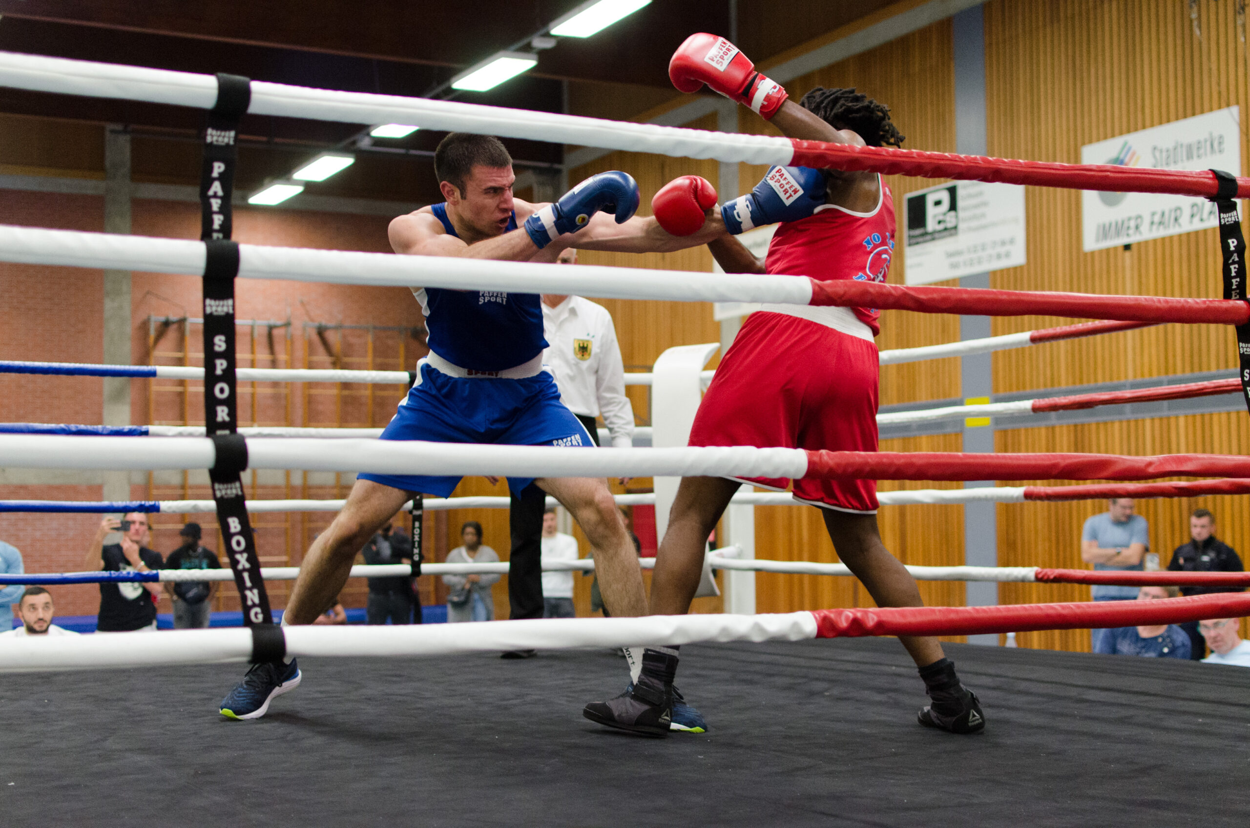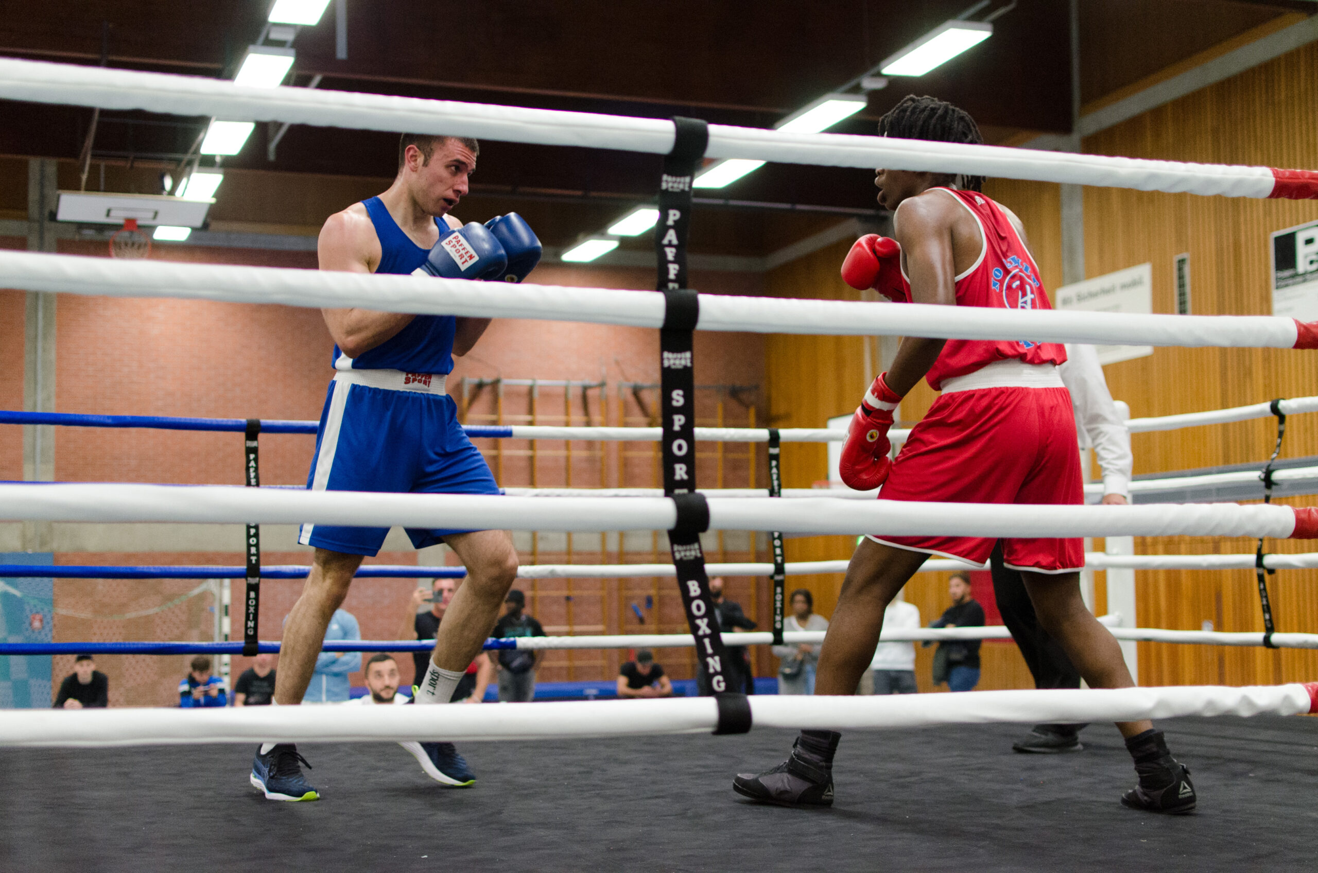 Bei der Finalveranstaltung standen sich dann zwei Kadersportlerinnen des deutschen Boxverbandes gegenüber. Charlotte boxte gegen Joelle Heuer. Diese war einen halben Kopf größer und war schon im Viertel- und Halbfinale durch eine unsaubere Kampfführung aufgefallen. Immer wieder unterband sie das Kampfgeschehen, indem sie sich von oben auf ihre Gegnerinnen lehnte und ihre Arme einklemmte. Das tat sie ebenfalls bei Charlotte. Immer wieder hielt sie ihren Kopf weg, schubste regelrecht und beschwerte sich dann mit Gesten und Blicken beim Unparteiischen im Ring. Auf boxerische Herausforderungen hat man sich Monate und Jahrelang vorbereitet und muss im Ring „nur“ Gelerntes abrufen. Aber an so einem Punkt (wenn permanent unsauber und unsportlich gegen die Regeln agiert wird), zeigen sich die Nerven. Charlotte löste die Situation bestmöglich und versuchte nach ihren Angriffen schnell wieder ausserhalb der Reichweite der Hühnin zu gelangen. Nicht selten schaffte diese jedoch Charlottes Kopf zu schnappen und ihn runter zu drücken oder fest zu halten. Zwei Mal verwarnte der Ringrichter die Boxerin. Im Kampfverlauf traf Charlotte trotzdem immer wieder harte Schlaghände zum Körper der Rechtsauslegerin und schloss ihre Aktionen zum Kopf ab.
