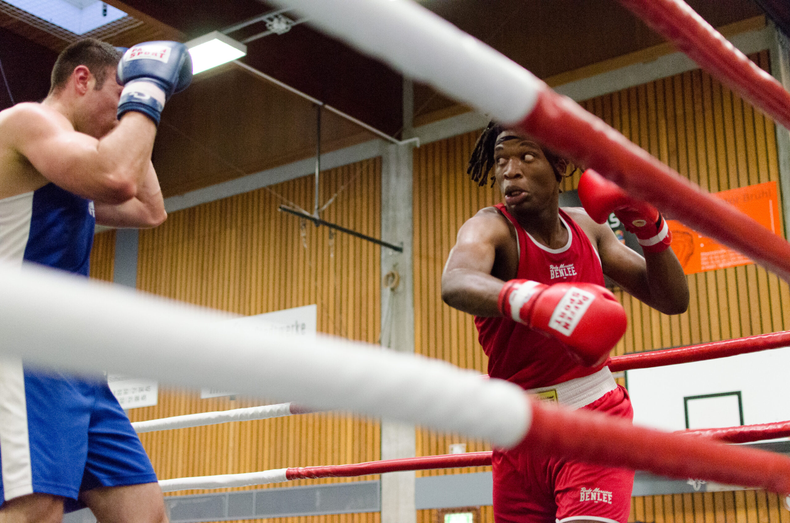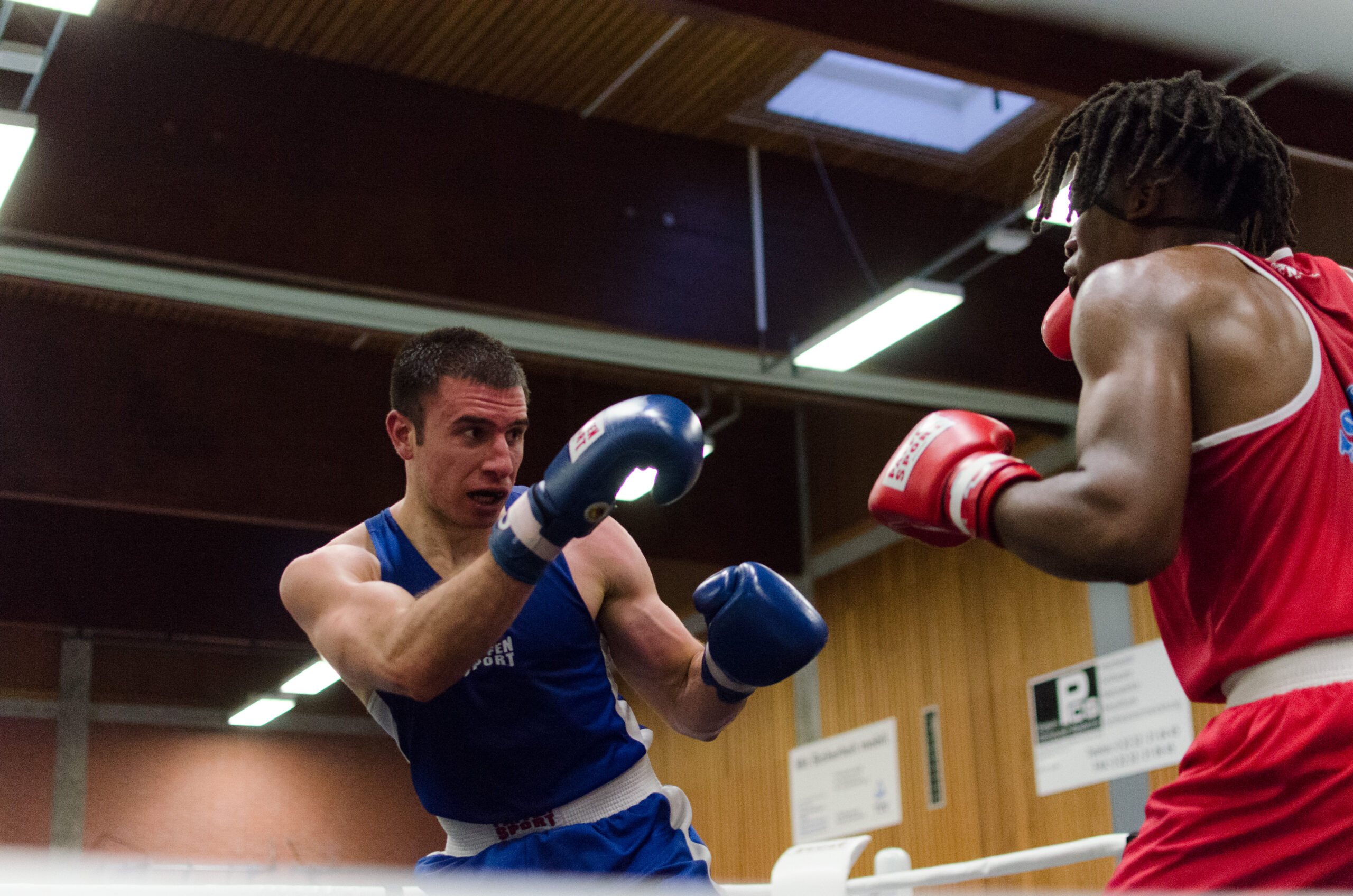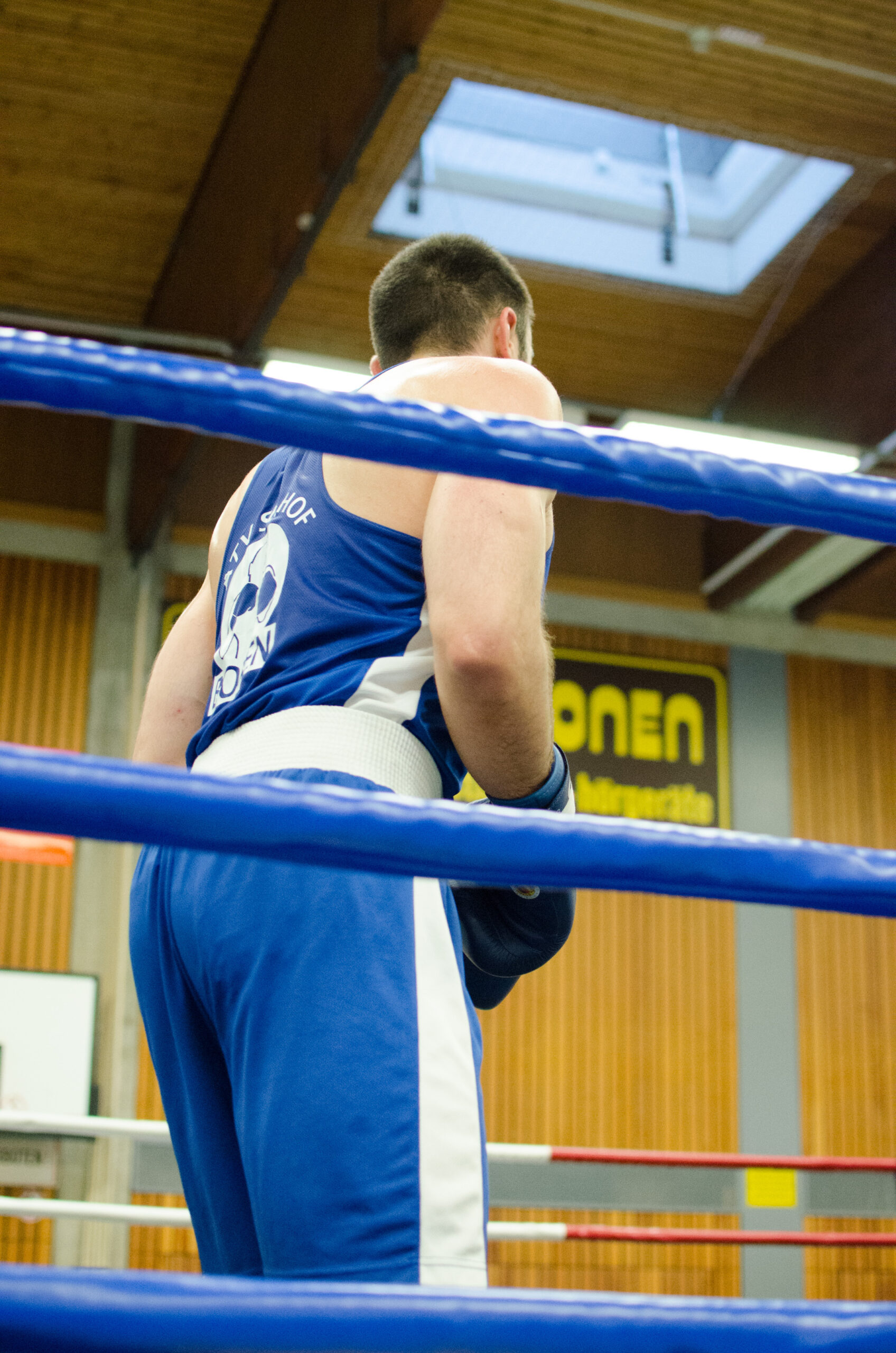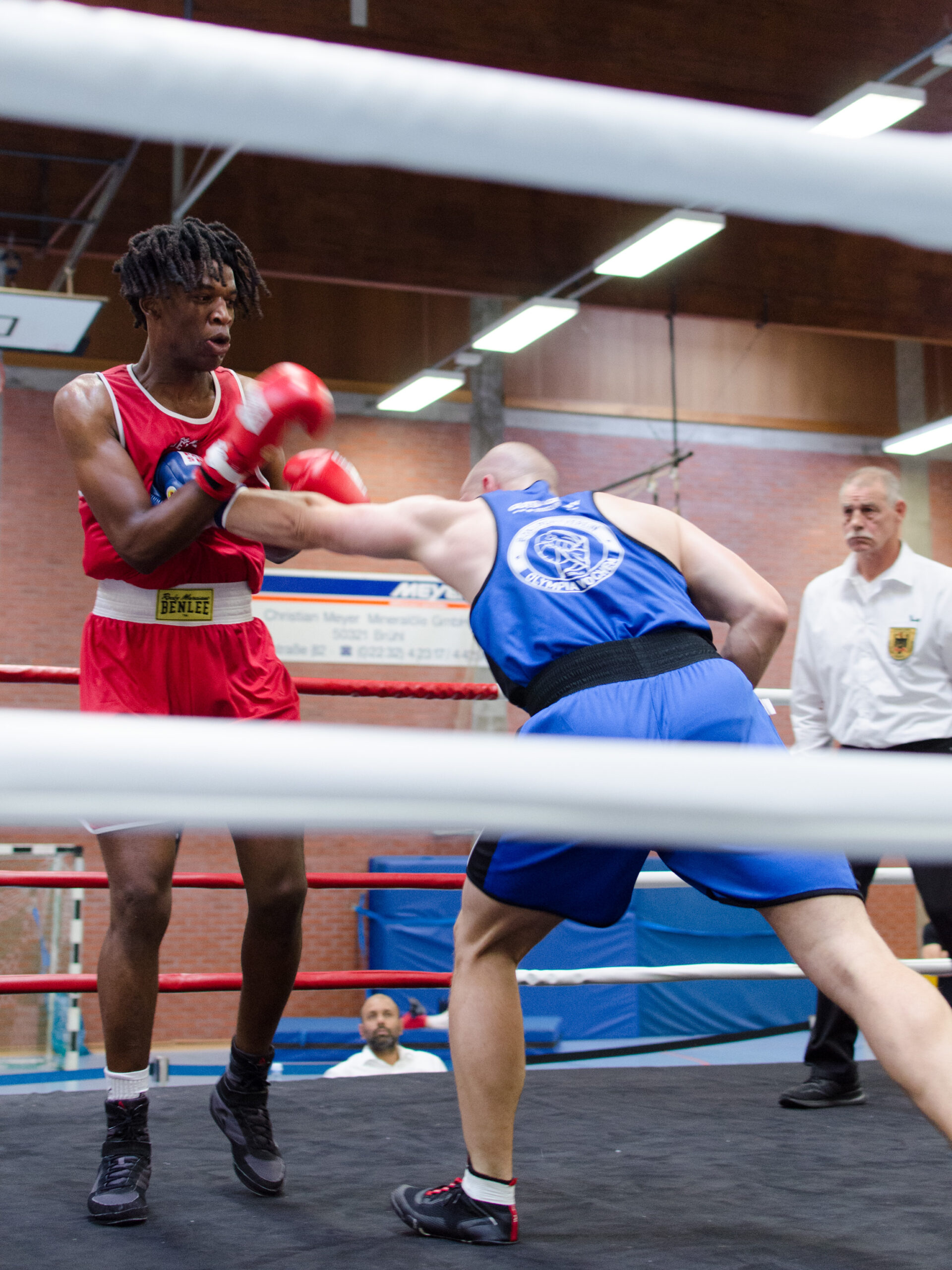 Bei der Finalveranstaltung standen sich dann zwei Kadersportlerinnen des deutschen Boxverbandes gegenüber. Charlotte boxte gegen Joelle Heuer. Diese war einen halben Kopf größer und war schon im Viertel- und Halbfinale durch eine unsaubere Kampfführung aufgefallen. Immer wieder unterband sie das Kampfgeschehen, indem sie sich von oben auf ihre Gegnerinnen lehnte und ihre Arme einklemmte. Das tat sie ebenfalls bei Charlotte. Immer wieder hielt sie ihren Kopf weg, schubste regelrecht und beschwerte sich dann mit Gesten und Blicken beim Unparteiischen im Ring. Auf boxerische Herausforderungen hat man sich Monate und Jahrelang vorbereitet und muss im Ring „nur“ Gelerntes abrufen. Aber an so einem Punkt (wenn permanent unsauber und unsportlich gegen die Regeln agiert wird), zeigen sich die Nerven. Charlotte löste die Situation bestmöglich und versuchte nach ihren Angriffen schnell wieder ausserhalb der Reichweite der Hühnin zu gelangen. Nicht selten schaffte diese jedoch Charlottes Kopf zu schnappen und ihn runter zu drücken oder fest zu halten. Zwei Mal verwarnte der Ringrichter die Boxerin. Im Kampfverlauf traf Charlotte trotzdem immer wieder harte Schlaghände zum Körper der Rechtsauslegerin und schloss ihre Aktionen zum Kopf ab.