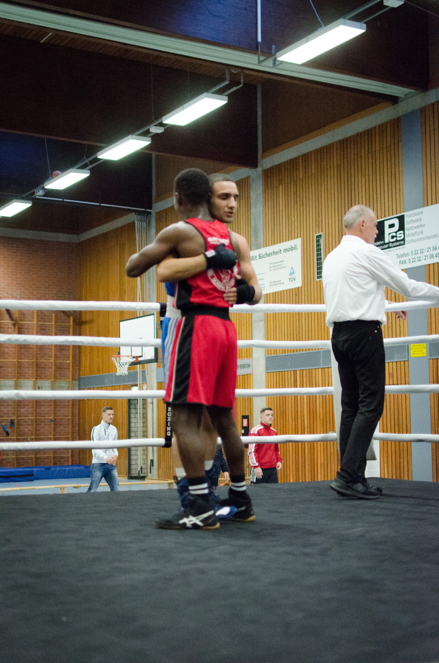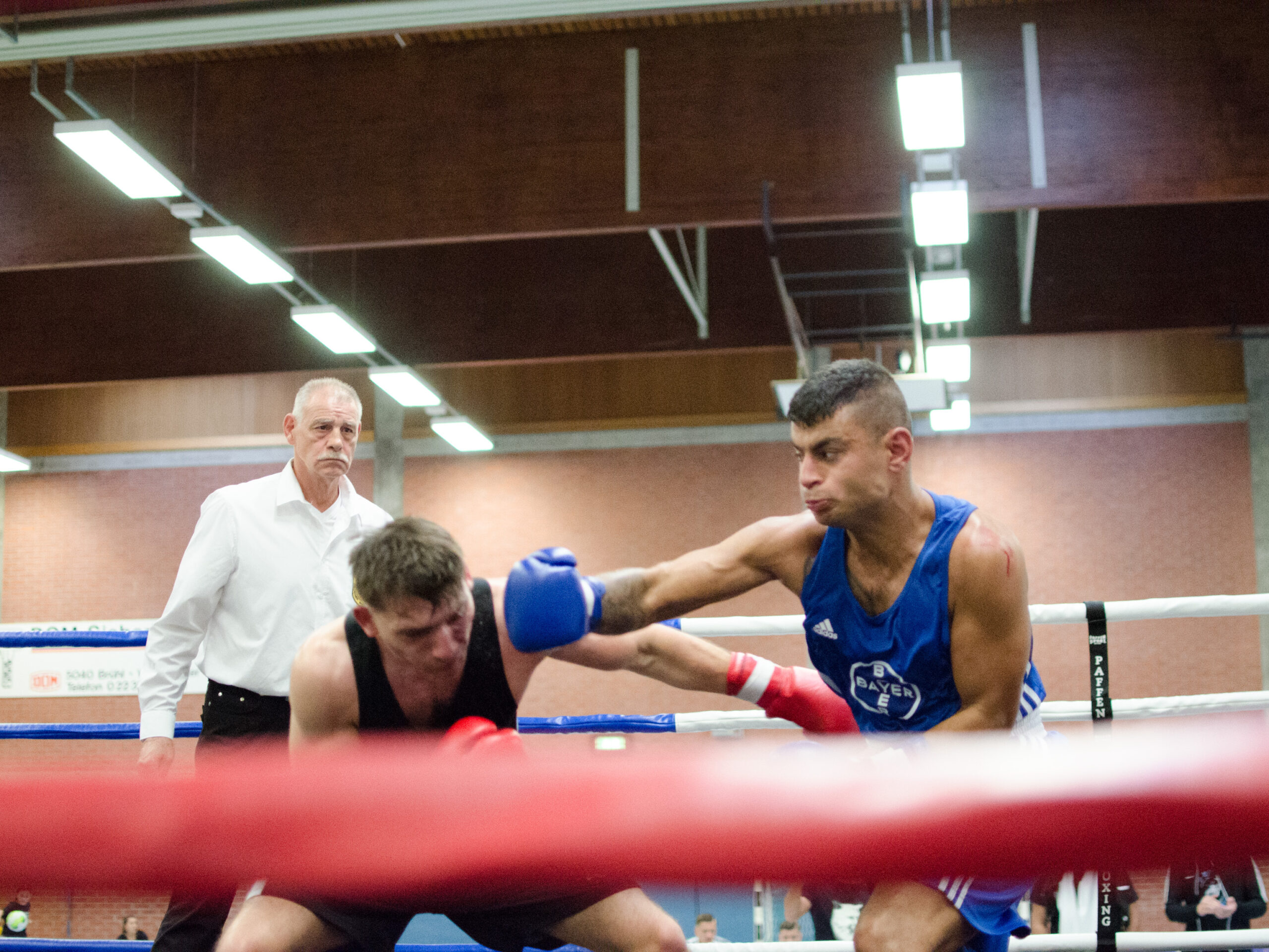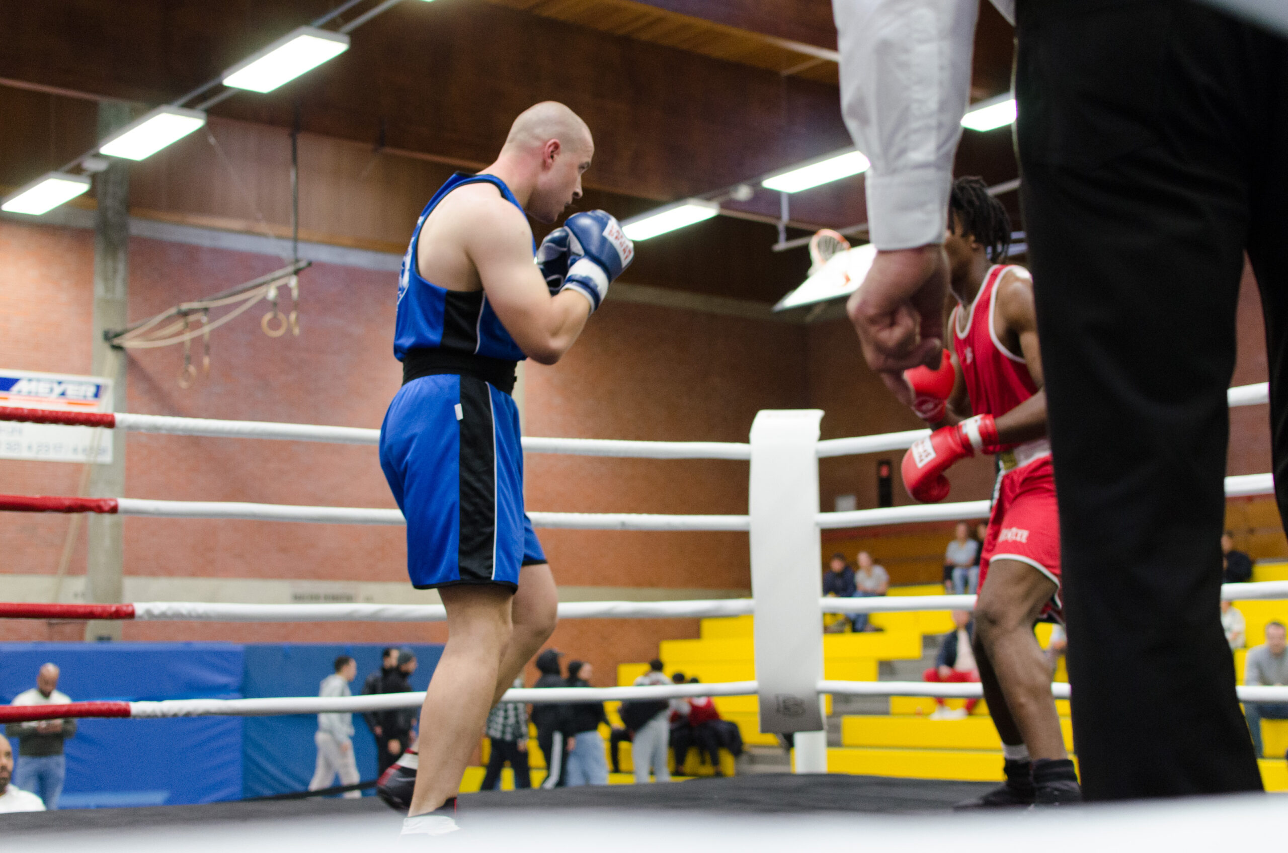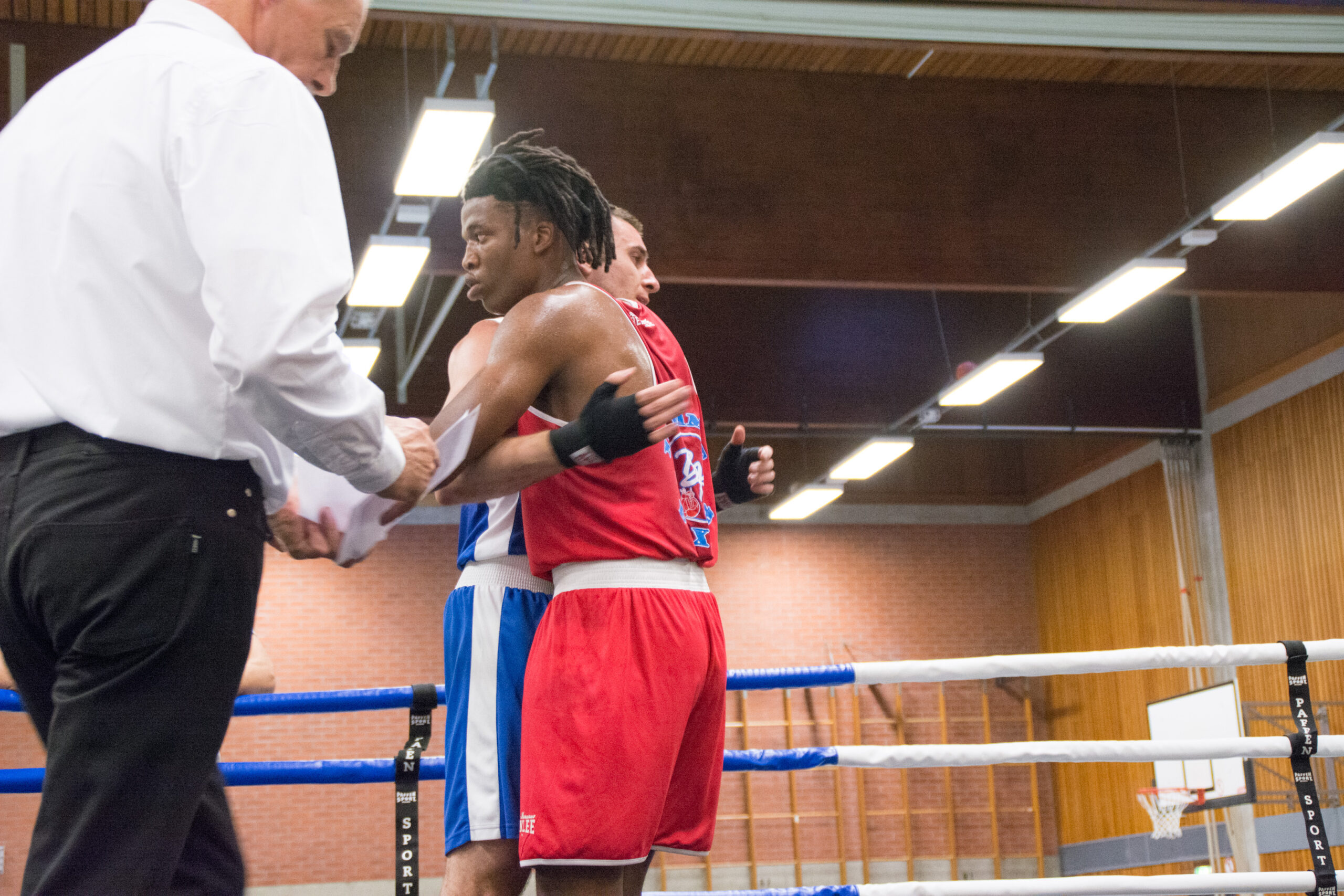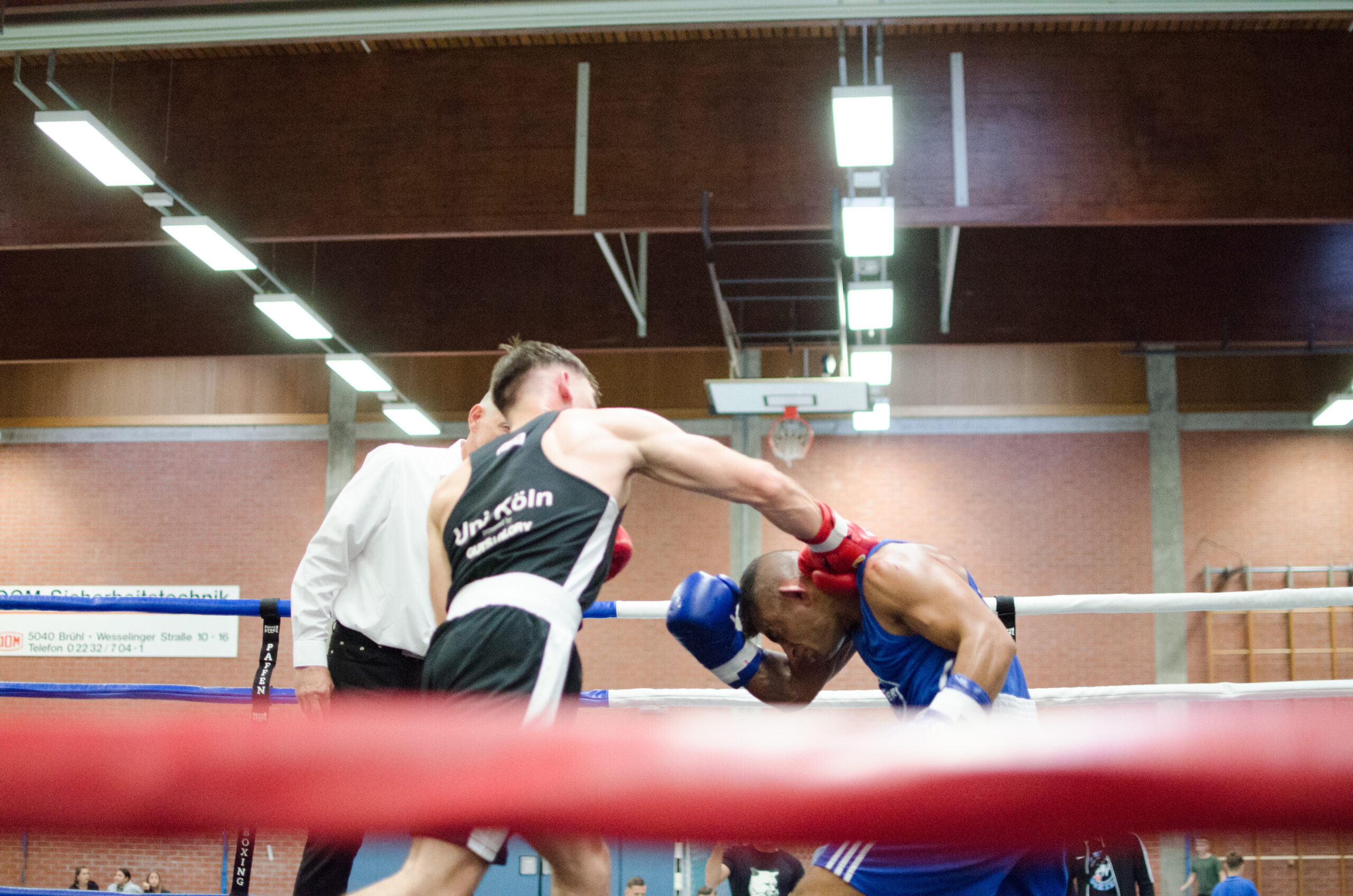 Bei der Finalveranstaltung standen sich dann zwei Kadersportlerinnen des deutschen Boxverbandes gegenüber. Charlotte boxte gegen Joelle Heuer. Diese war einen halben Kopf größer und war schon im Viertel- und Halbfinale durch eine unsaubere Kampfführung aufgefallen. Immer wieder unterband sie das Kampfgeschehen, indem sie sich von oben auf ihre Gegnerinnen lehnte und ihre Arme einklemmte. Das tat sie ebenfalls bei Charlotte. Immer wieder hielt sie ihren Kopf weg, schubste regelrecht und beschwerte sich dann mit Gesten und Blicken beim Unparteiischen im Ring. Auf boxerische Herausforderungen hat man sich Monate und Jahrelang vorbereitet und muss im Ring „nur“ Gelerntes abrufen. Aber an so einem Punkt (wenn permanent unsauber und unsportlich gegen die Regeln agiert wird), zeigen sich die Nerven. Charlotte löste die Situation bestmöglich und versuchte nach ihren Angriffen schnell wieder ausserhalb der Reichweite der Hühnin zu gelangen. Nicht selten schaffte diese jedoch Charlottes Kopf zu schnappen und ihn runter zu drücken oder fest zu halten. Zwei Mal verwarnte der Ringrichter die Boxerin. Im Kampfverlauf traf Charlotte trotzdem immer wieder harte Schlaghände zum Körper der Rechtsauslegerin und schloss ihre Aktionen zum Kopf ab.