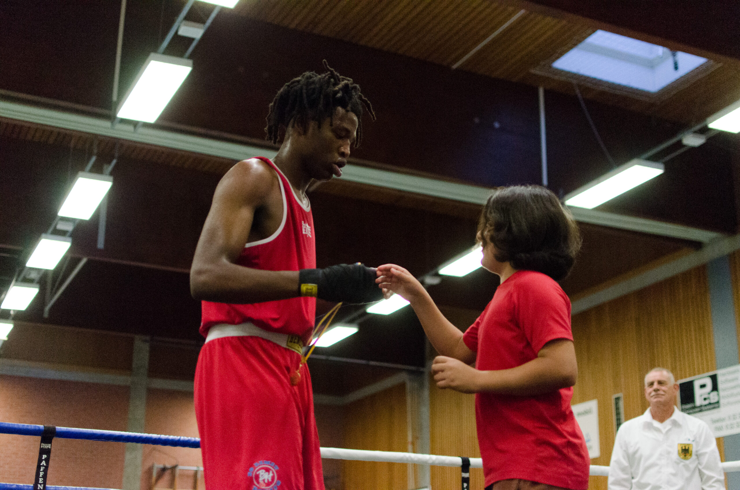 Charlotte Kienel, die in Köln wohnt und, zusätzlich zu Lauf- und Krafteinheiten zu Hause oder am Bundesstützpunkt, 3-5 Mal die Woche zu ihrem Verein in Brühl kommt, hatte in den letzten 10 Wochen trainingstechnisch noch einen drauf gesetzt und wöchentlich 8-12 Trainingseinheiten absolviert. Die Vorbereitung blieb verletzungsfrei und ohne Komplikationen. Und so war sie physisch und mental von ihrer Trainerin Lisa Puri vorbereitet worden. Diese reiste mit nach Bremerhaven um Charlotte in der Ringecke zu unterstützen.