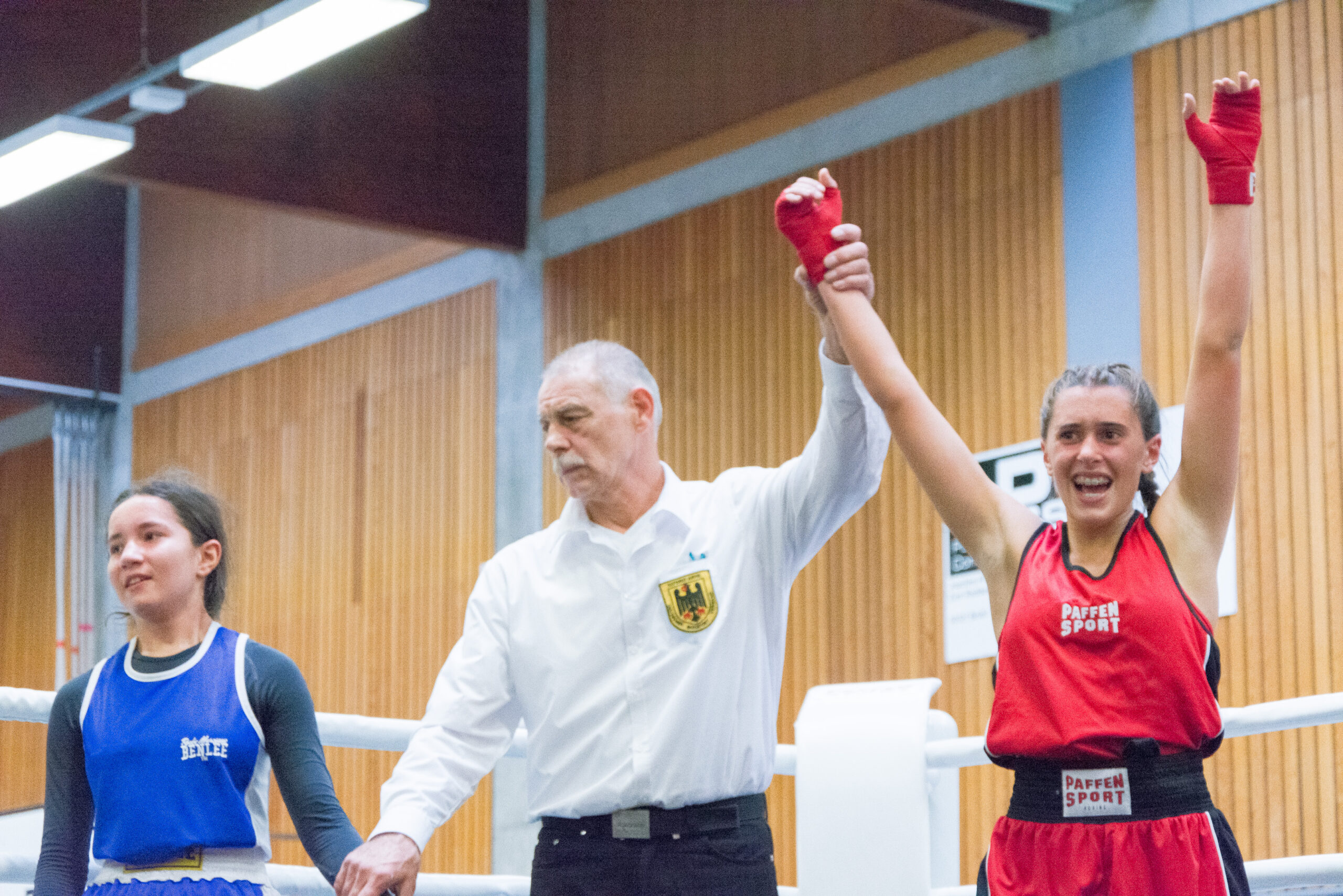 Letztes Jahr startete die heute 15 Jährige noch als „Underdog“. Mit der zarten Erfahrung aus nur 7 Boxkämpfen schlug sie damals unter anderem Sophia Illenser vom Landesverband Süd-West, mit 20 Kämpfen mehr.